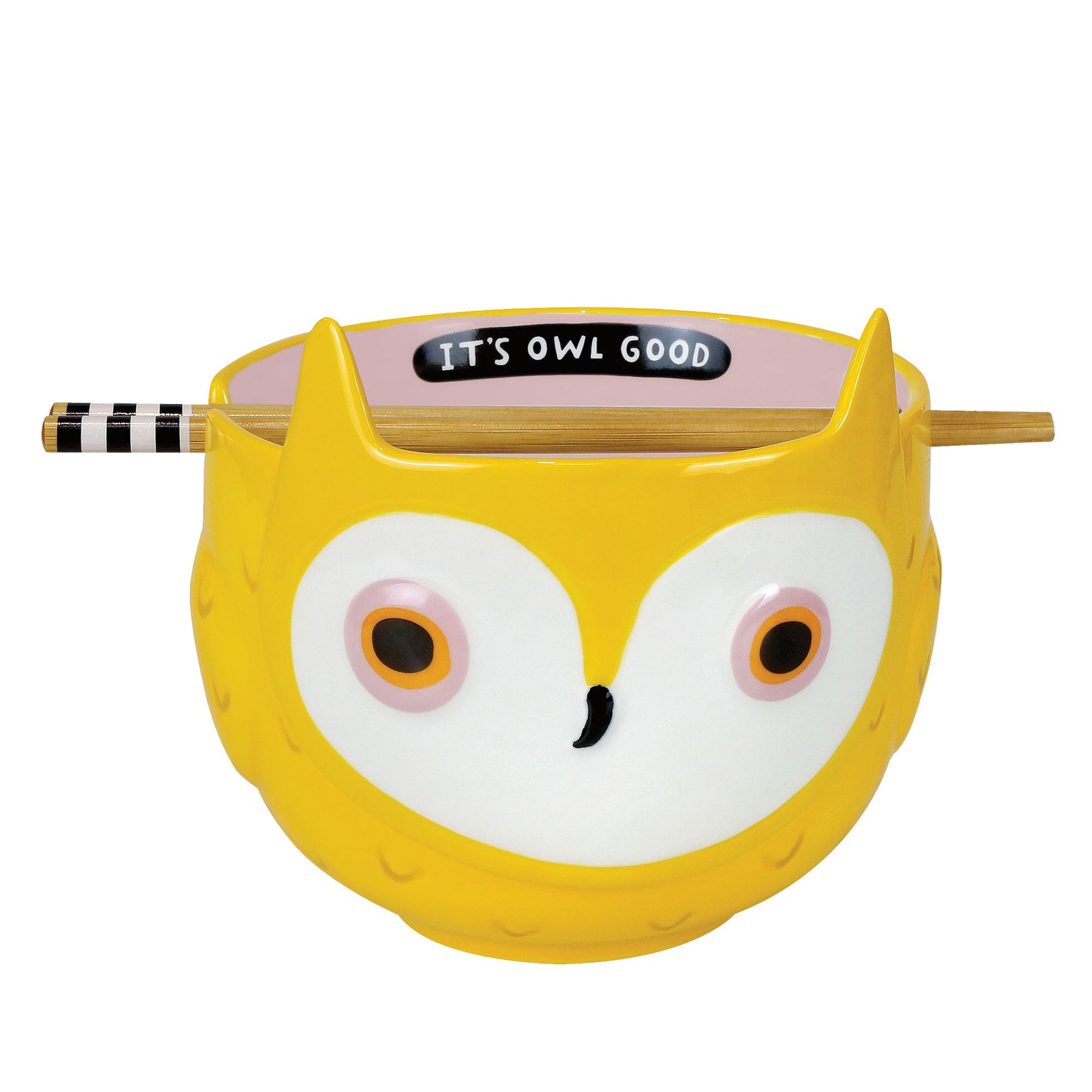 Bring a hoot of fun to your meals with this cheerful owl ramen bowl from Allen Designs and Our Name is Mud. Featuring a bright yellow owl and the playful message "It's Owl Good," this bowl comes with bamboo chopsticks for a wise and wonderful meal!