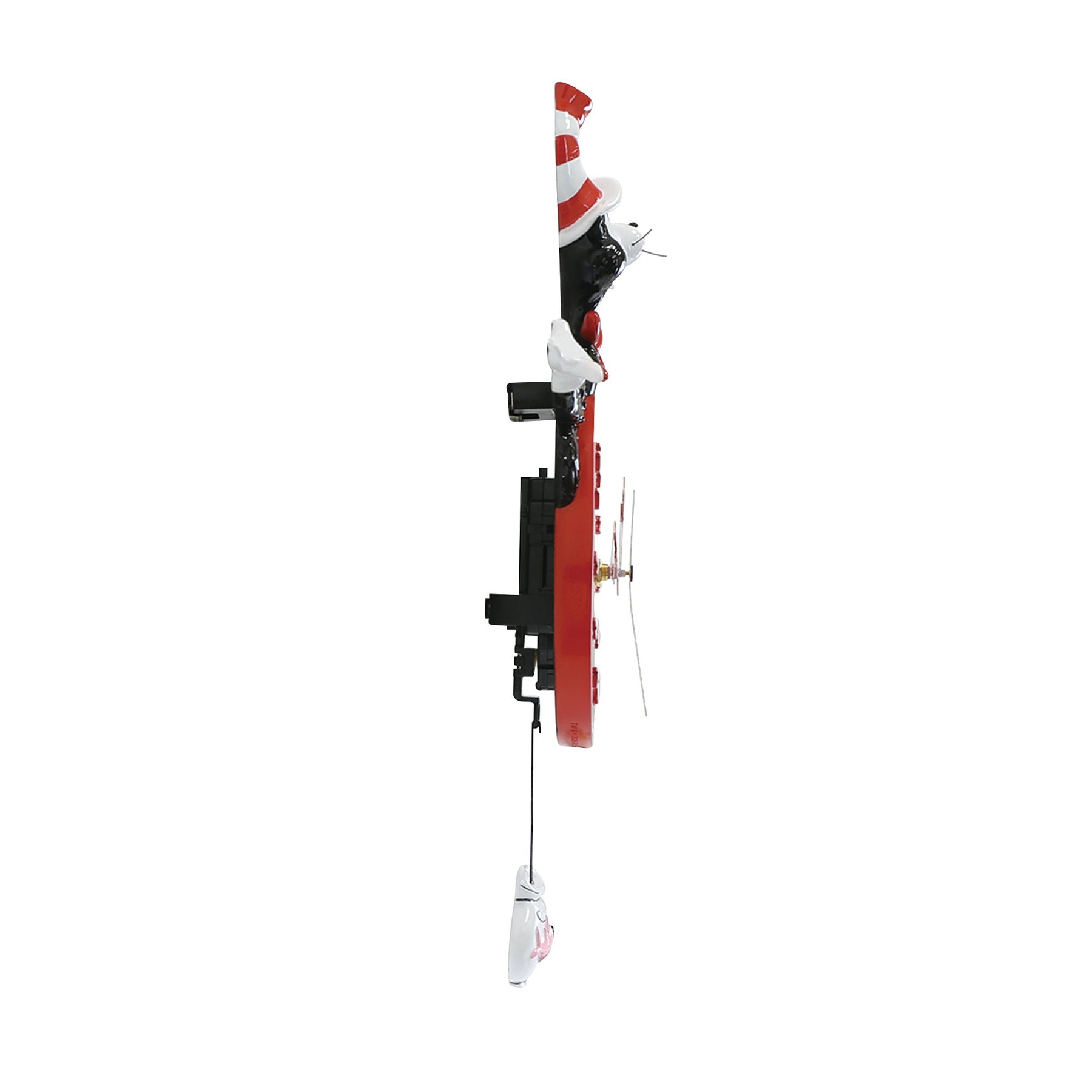 Bring storybook fun to your walls with this Cat in the Hat wall clock from Allen Designs. The Cat smiles at a tea kettle with a fish popping out, while a charming fishbowl swings as the pendulum, bring Seussian charm to your home decor.