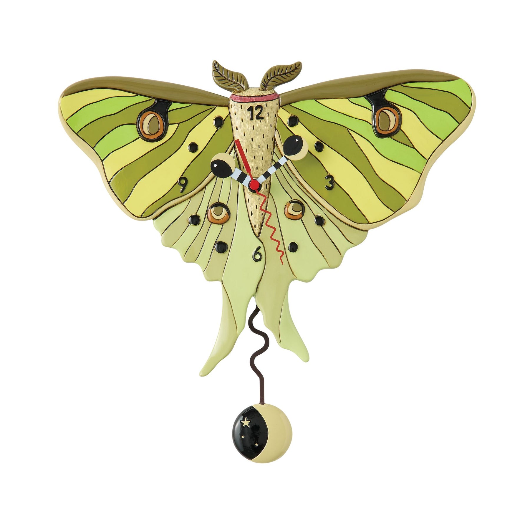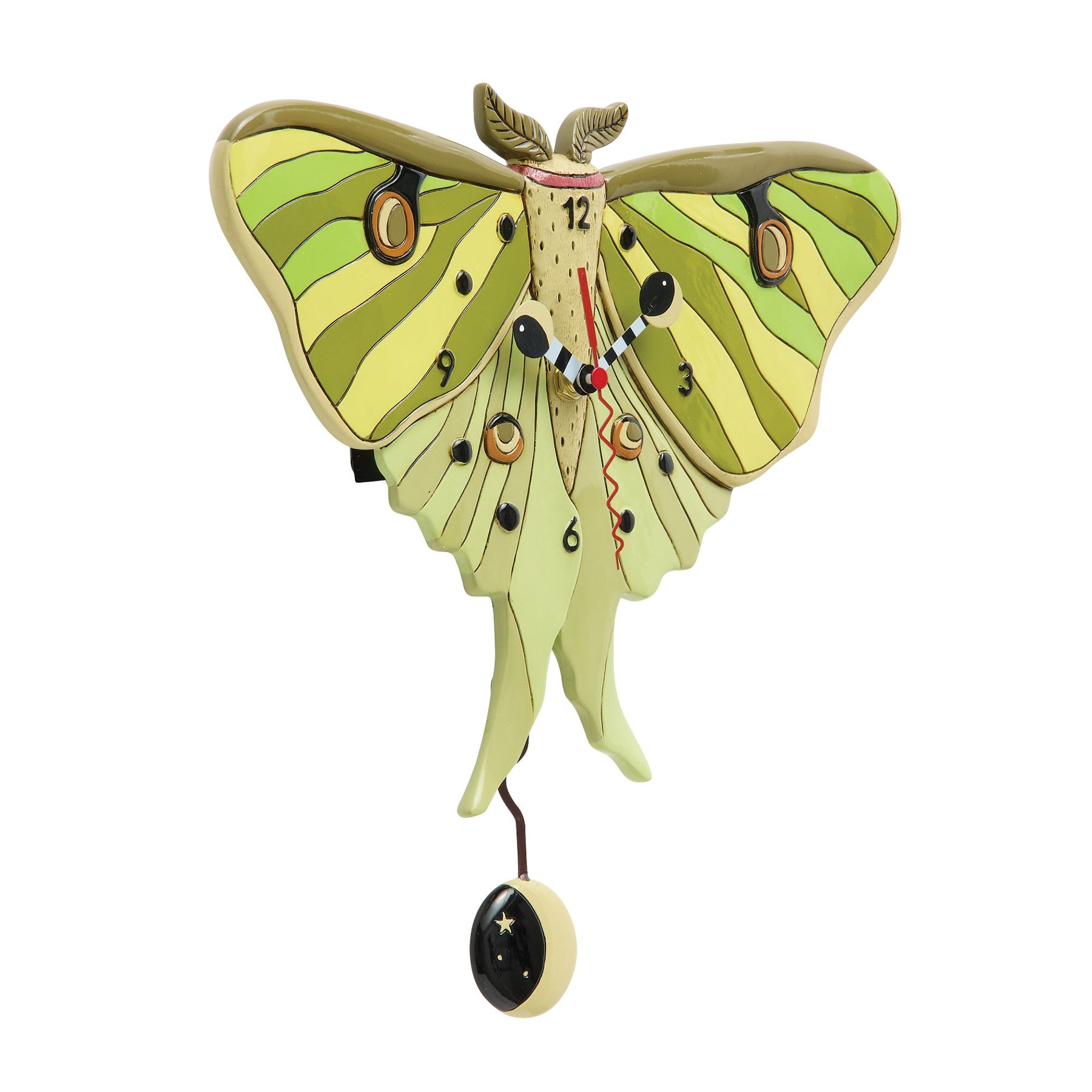 Add a touch of nature's magic with this enchanting moth wall clock from Allen Designs. Painted in soothing shades of green, this whimsical clock captures the delicate beauty of a moth in flight, bringing charm and wonder to any room.