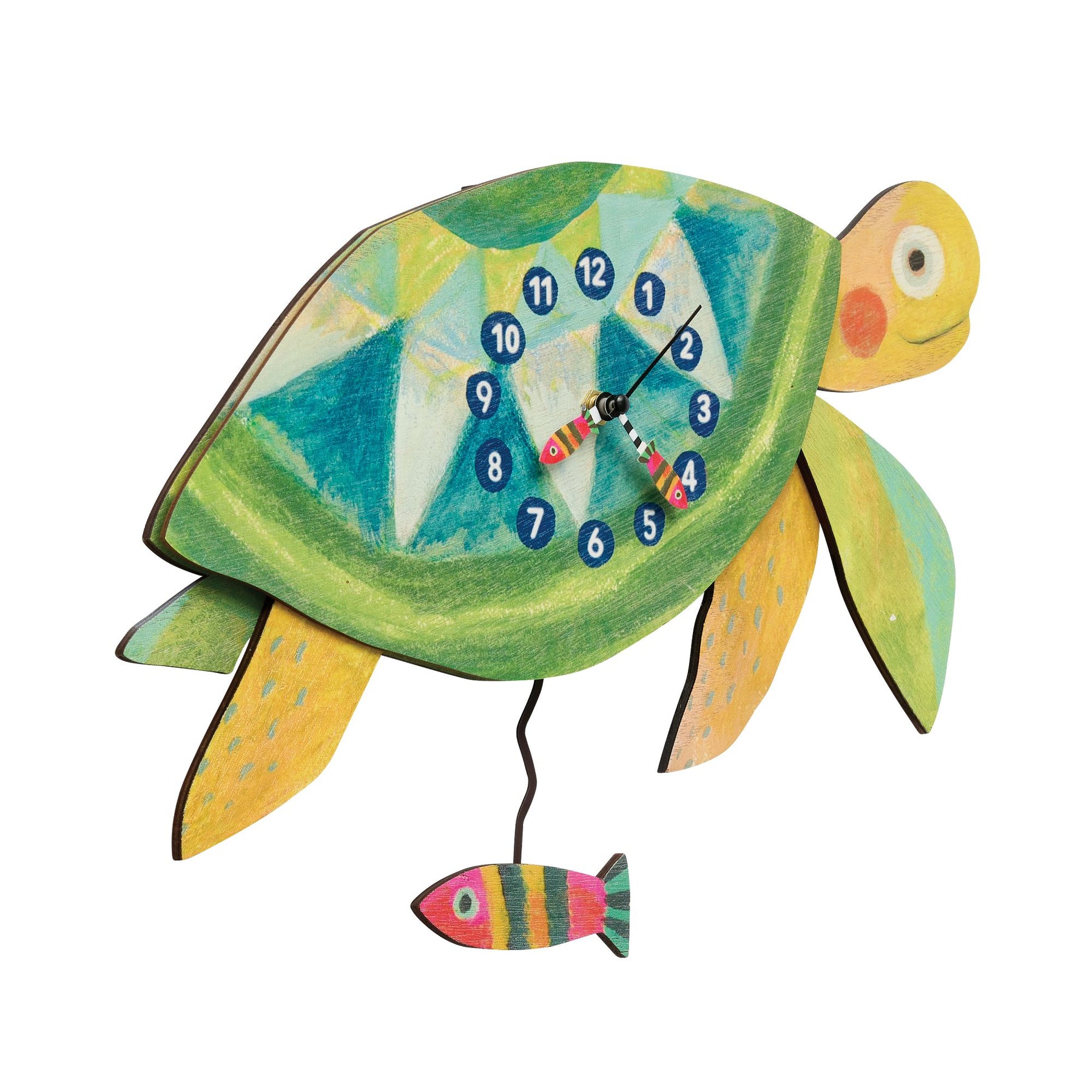 Dive into whimsy with this cute turtle wall clock from Allen Designs. Featuring a sweetly smiling turtle and a playful fish pendulum, this charming clock brings personality, fun, and a touch of ocean magic to any room.
