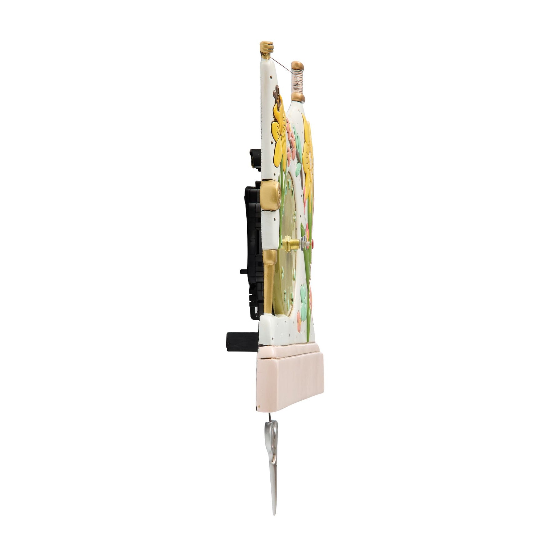 Stitch together charm and whimsy with this sewing machine wall clock from Allen Designs. Adorned with colorful flowers and featuring a playful scissor pendulum, this delightful clock brings creativity and a touch of crafty magic to any room.